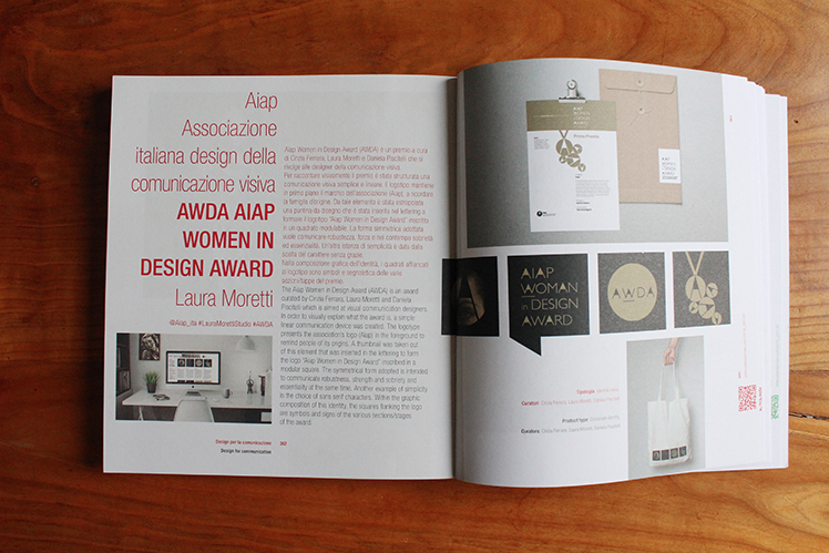 Con grande piacere ne fa parte l’identità visiva che abbiamo progettato per il premio AWDA Aiap Women in Design Award.